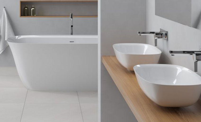 The Ive family contains: bathtub, column washbasin, two countertop washbasins, furniture and wallhung washbasin.