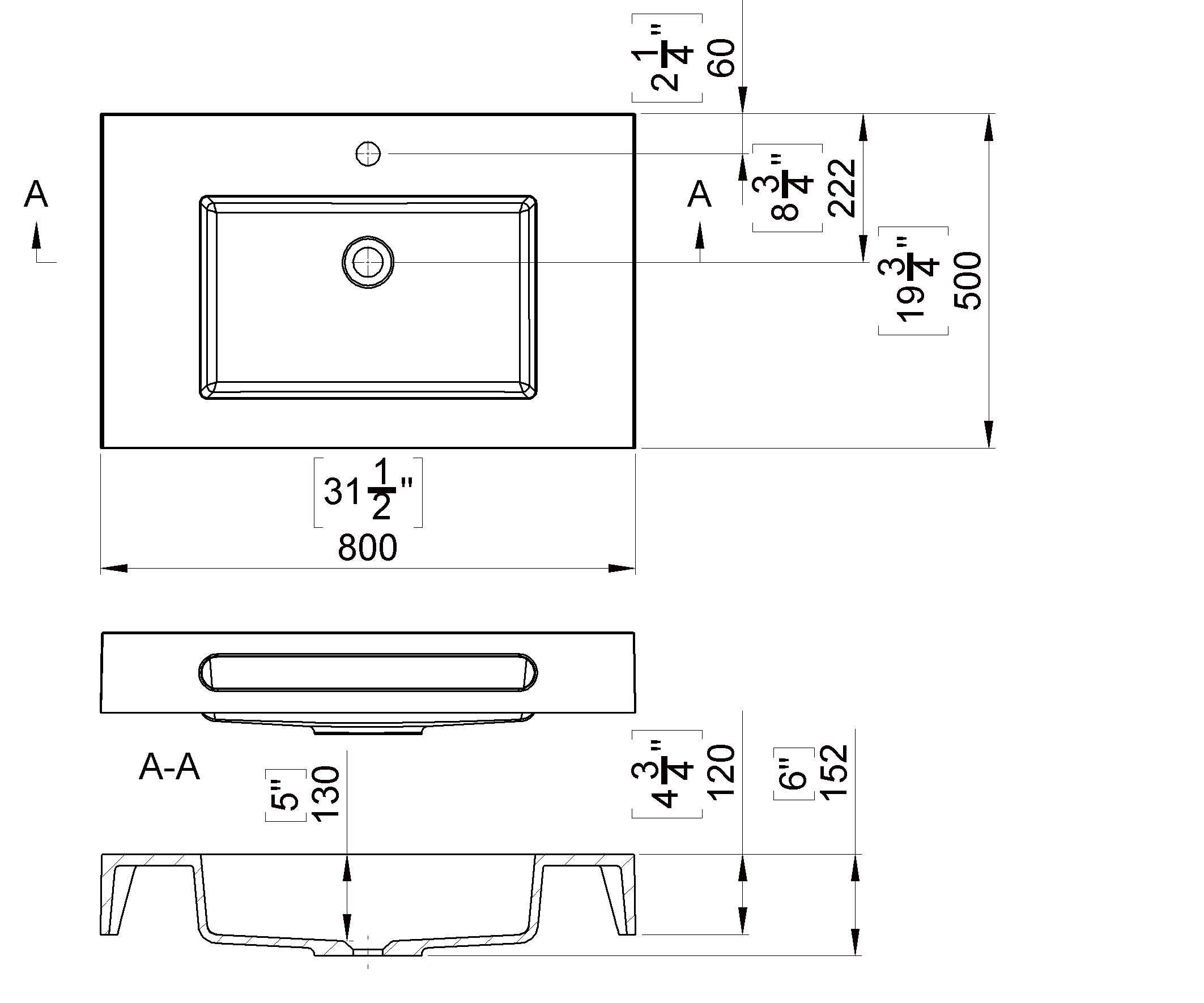 | Dimensions: | L: 800 mm W: 500 mm H: 152 mm |